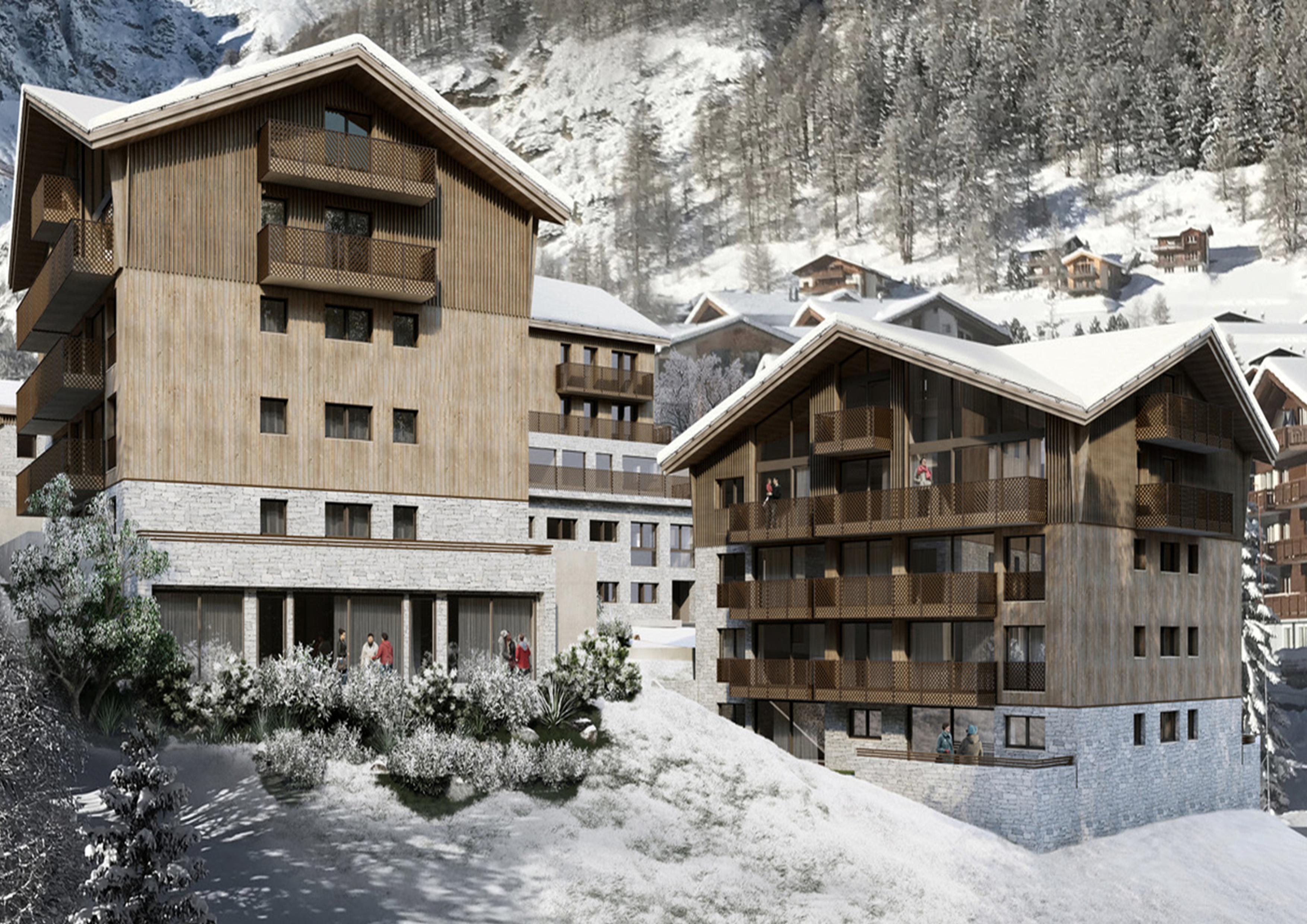 Saastal Village offers the best of both worlds, combining convenient village life with an unbeatable ski-in-ski-out location. Located next to the main street and in close proximity to the best restaurants and après-ski spots, these new properties are just 40 metres away from the slopes and lifts, making it the perfect destination for skiers and snowboarders. Additionally, the properties are built above the Fee Vispa river, offering a tranquil and nature-close atmosphere. The big windows of the modern and exclusive apartments provide breathtaking views of the glacier, and inside, guests will enjoy spacious and light living spaces. Come experience the ultimate ski holiday at Saastal Village.